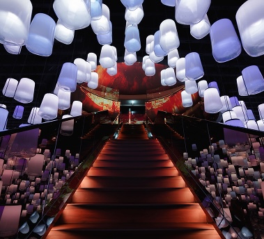 Yi Peng, reimagined. Lantern light rises through infinity mirrors into the skyline. No fire, no smoke only wonder.
